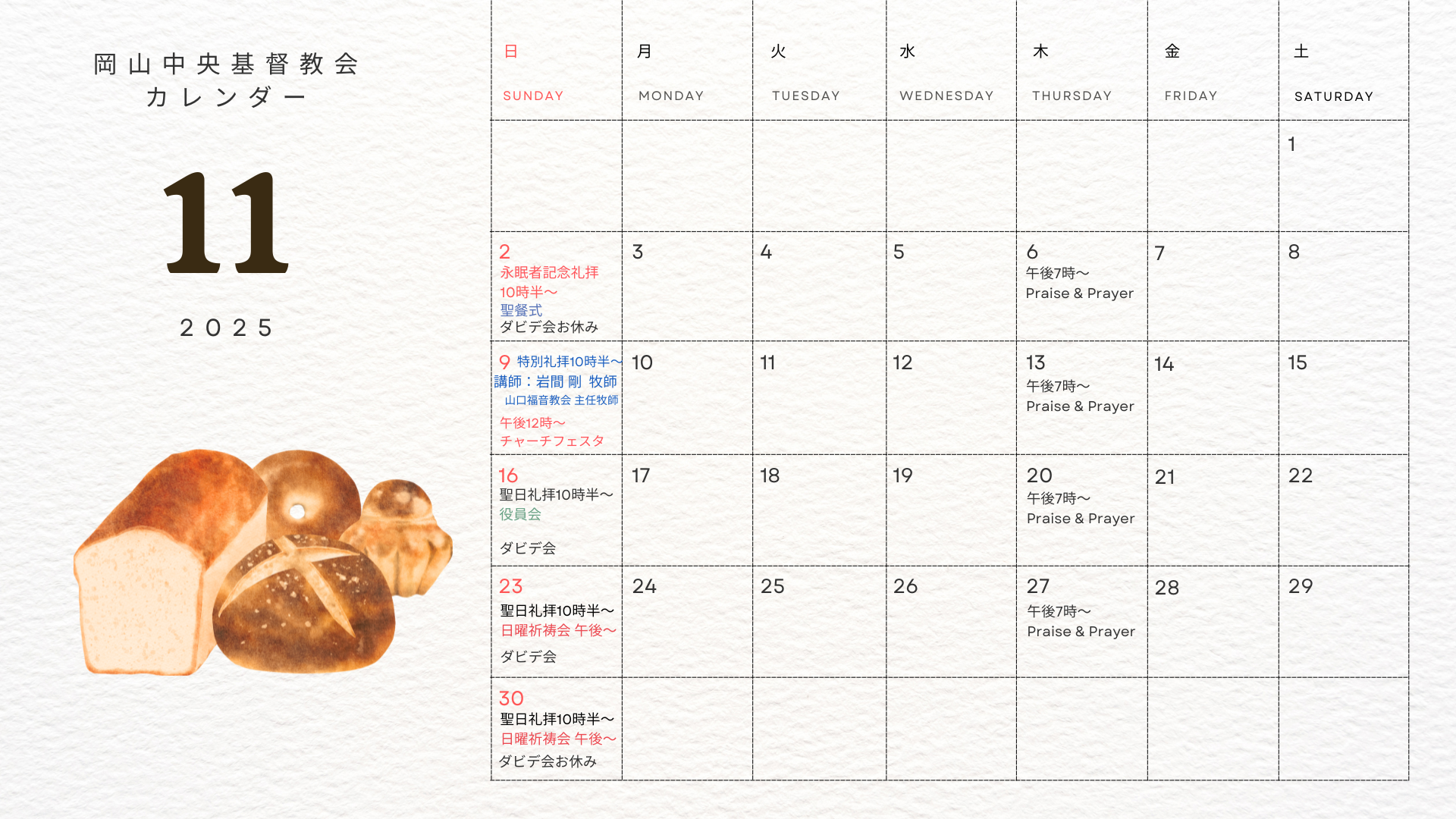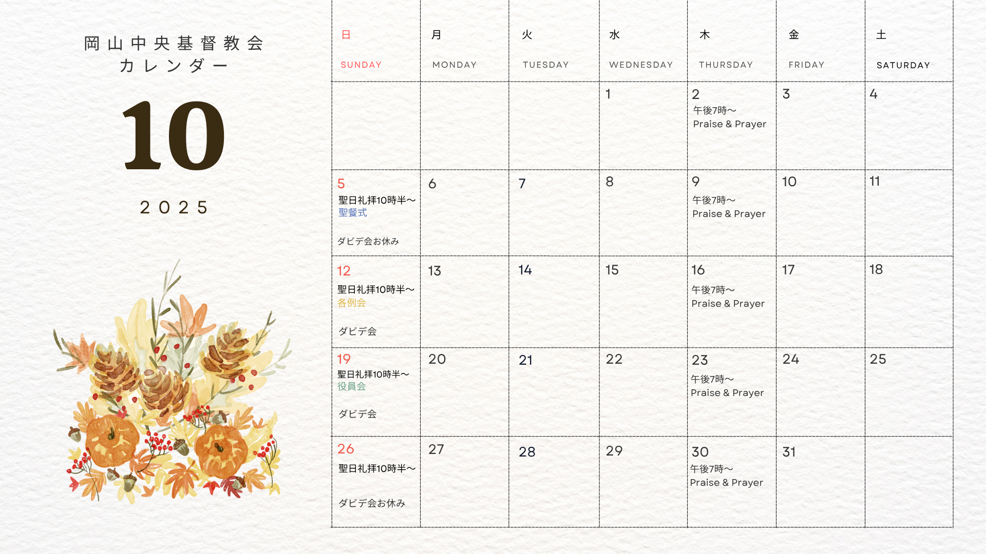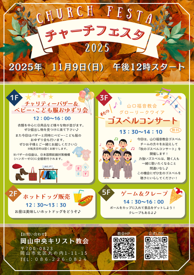 午前10時30分からの礼拝では、山口福音教会の岩間剛先生を講師にお迎えして特別メッセージが語られますので、ぜひ礼拝にもお越しください☆